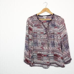 Joie Ailana All Over Print Lace-Up 100% Silk Blouse Size M