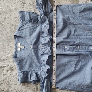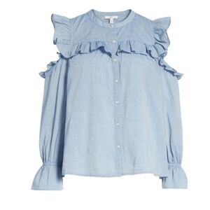 Joie Akari Ruffled Cold Shoulder Button Front Chambray Blouse SzXS