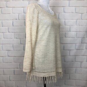 Joie Annalie Linen Blend Fringe Sweater Size XS Beige