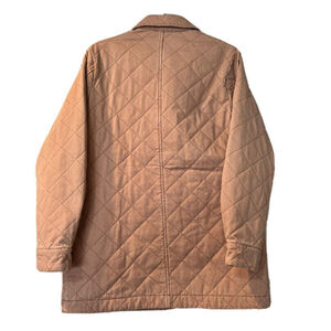 This cute jacket is perfect for fall and winter! It’s quilted, collard, it has a button snap closure, 4 pockets and it’s semi oversized. Smoke free home. Size: Small Length: 28.5” Pit to pit: 21” Measurements are approximate Material: 100% Cotton Dry Clean