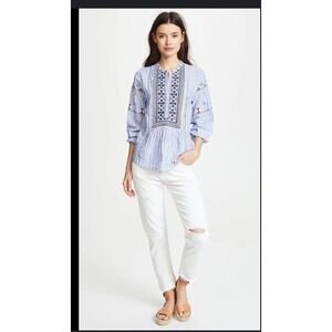 Joie Archana Knit Embroidered Top boho striped floral fall blouse button up $200