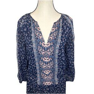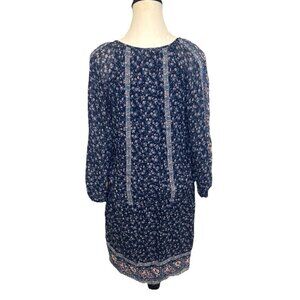 Joie Ariella 100% Silk Drop Waist Lined Navy Floral Dress Sz XS Boho Peasant