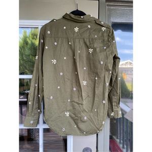 Joie Army Green Button Down Hayfa Embellished Shirt Beaded Size Small, MSRP $298