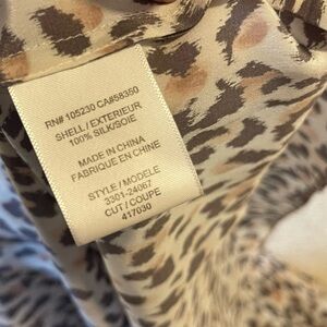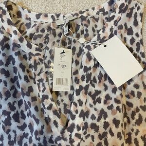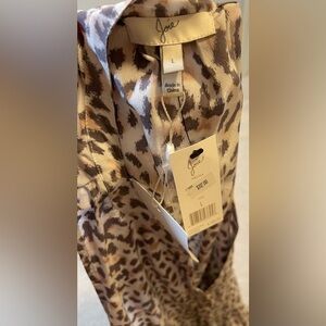 Introducing the Joie Aruna Leopard Print Sleeveless Silk Blouse in size large. Crafted from 100% silk with semi-sheer georgette fabric, this top features a split V-neck design. Its color soft sand leopard print adds a touch of elegance. Brand new with tags and in impeccable condition, this blouse is the ideal choice for your spring and summer wardrobe. Pair it with denim and your favorite sandals for a chic look!