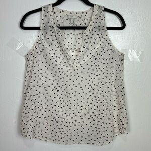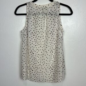 Joie Aruna White Silk Brown Heart Print Sleeveless Blouse Top Size S