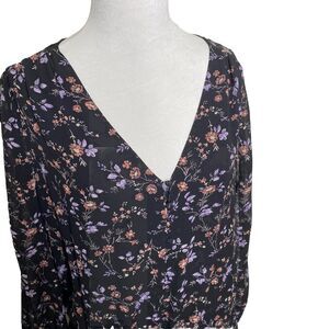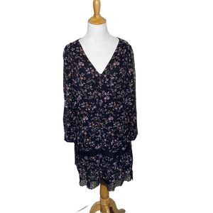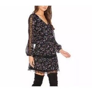 Joie Auggie Dress Silk Floral Lace V Neck Black Blouson Womens Size Medium. In good condition. V neck. Long sleeves. Lace accents. Shell: 100% Silk Lace : 100 % nylon