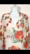 Features a streaky, abstract floral print with warm colors, a flowing V-neck, a smocked back yoke, and bracelet sleeves. Relaxed fit, pullover style, sheer