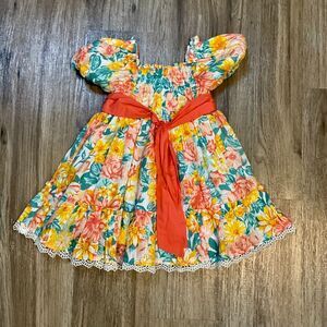 Joie Baby Girls Short Puff Sleeve Floral Dress with Bow Ruffles Lined Size 18M