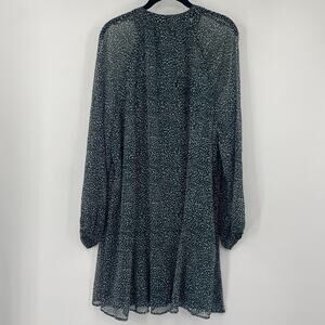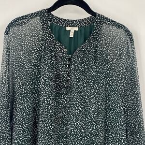 Joie Balloon Sleeve Mini Swing Dress Button Front Animal Dot Print Green XXL