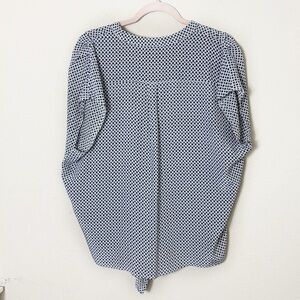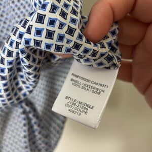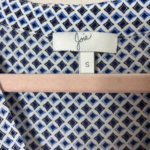 Joie Baxter Blue Black Diamond Print 100% Silk Tie Waist Blouse Button Down Size Small