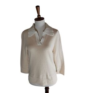Joie Beige Cotton Sweater White Peter Pan Collar, Preppy Romantic Medium NWT
