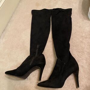Joie Bentlee Over The Knee Suede Heeled Boots Zipper Thigh-High black