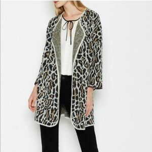 A muted palette tames the animal-spotted print of an oversized cardigan that doubles as a jacket on cool, crisp days. Cast in a lush wool blend infused other fluffy mohair, it’s sure to have you purring with delight.