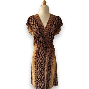 This chic wrap dress features a snakeskin print throughout.