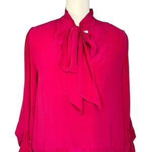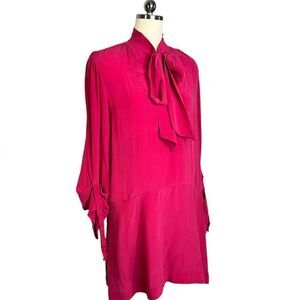 Joie Billie Silk Long Sleeve Bow Neck Dress in Persian Red | Size L