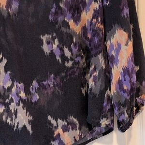 This Joie blouse features a relaxed fit with 3/4 sleeves, crafted in a flowing fabric that drapes beautifully. The black base color is adorned with a delicate floral print, adding a touch of elegance to its casual style. Perfect for a semi-casual occasion, this top combines comfort with a chic design.