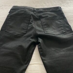 Sleek black ankle denim jeans by Joie. Features stylish zipper details. Perfect for versatile wear. These are in very good condition. They have a leather look to them