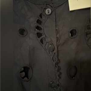 Chic black eyelet blouse/jacket with button front. Perfect for layering.
