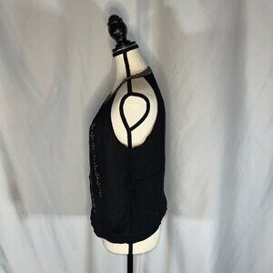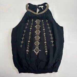 Joie - Black Gold Beaded Halter Top Blouse S Blouson Geometric Boho Festival