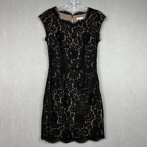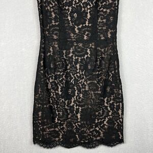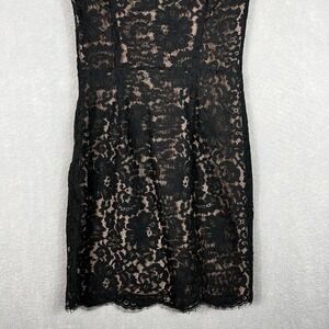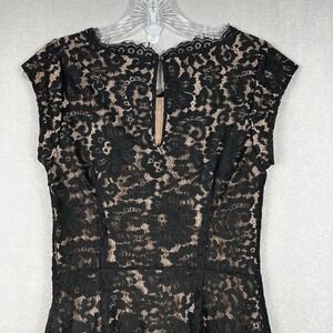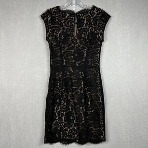 Joie Women's Mini Dress XS Black Illusion Lace, Cap Sleeve, Lined, Scallop Hem, small keyhole detail in the back, side zipper closure.