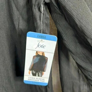 Joie Black Long Sleeve Smocked Neck Top Limited Edition Size L