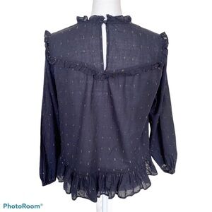 Joie Black & Metallic Ruffle Long Sleeve Gianella Blouse Semi Sheer Size S