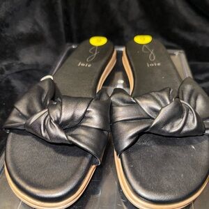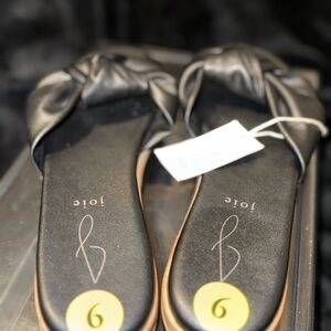 Elevate your summer look with these chic Joie leather slides in size 9. The slip-on style and flat platform sole make them perfect for a casual day out. The black color and solid pattern are versatile and can be paired with any outfit. The adjustable feature and standard shoe width provide comfort for all-day wear.