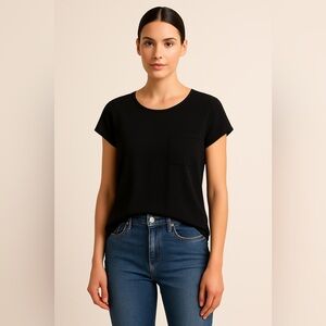 Keywords: Joie blouse, black short sleeve top, women’s size S, casual chic blouse, minimalist style