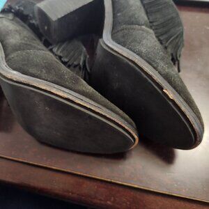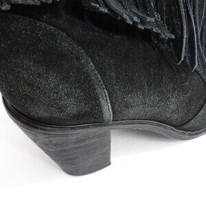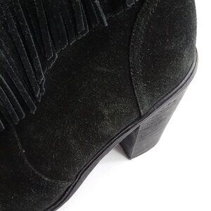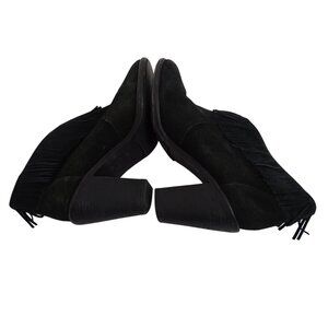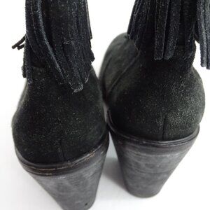 Joie Black Suede Fringe Ankle Boots Block Heel Women Size 39.5 8.5 Slip On