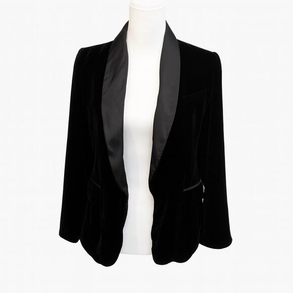 Joie Black Velvet Blazer Satin Shawl Lapel Tuxedo Jacket Women’s (Size small