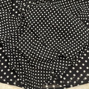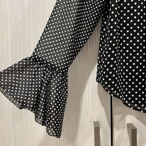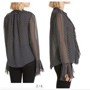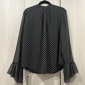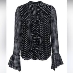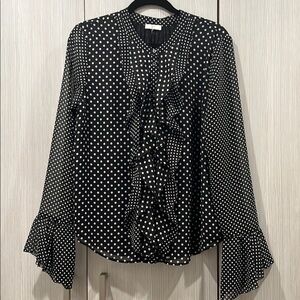Joie Black White Polka Dot Ruffled “Darek” Blouse Romantic Sheer Sleeves Large