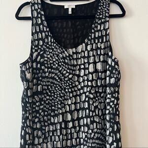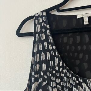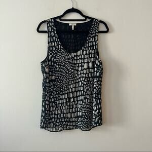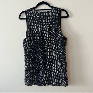 Joie Black & White Silk Patterned Beaded Sleeveless Top