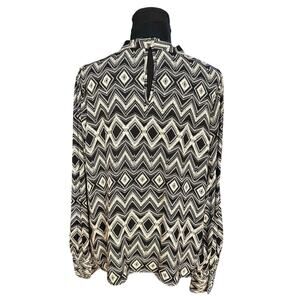 Joie Black and White Geometric Mock Neck Long Sleeve Career Wear Blouse Size L