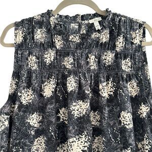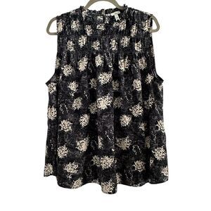 Joie Black and White Leaf Print Sleeveless Smocked Yoke Top | Size XXL