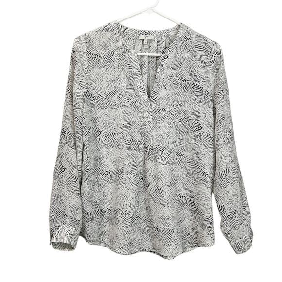 Joie Blouse Women XS Black White Dot V-Neck Silk Long Sleeve Lightweight