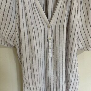 Joie Blouse Women's 3X White Striped V-Neck Lightweight Resort Vacation Casual