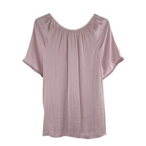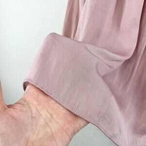 Joie Blouse Women's Medium Silky Satin Henley Blush Mauve Embroidered Sleeves