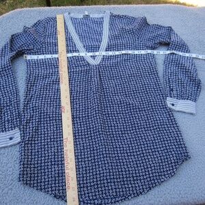 Joie Blouse Women's XS 100% Silk V-Neck Navy Star Carven Tunic Pullover