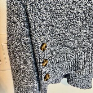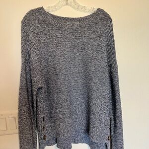Joie Blue Marled Knit Crewneck Sweater with Step Hem Side Buttons Size Large