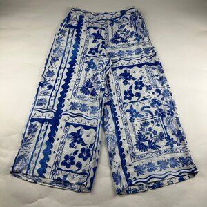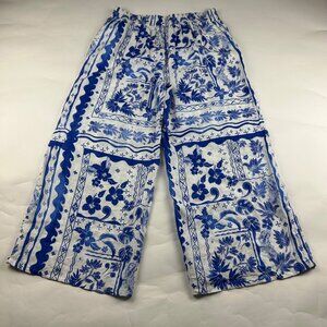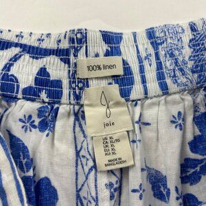 Joie Blue White Linen Stamp Print Wide Leg Summer Pant XL