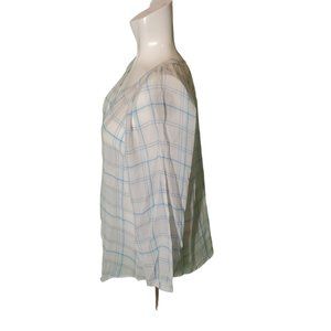 Joie Blue White Plaid Boho Gauzy Top Lightweight Peasant Top Button Tunic sz M