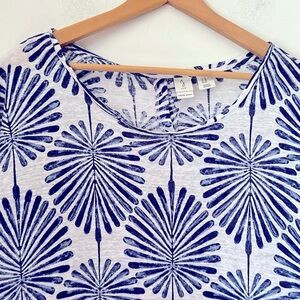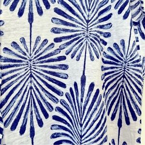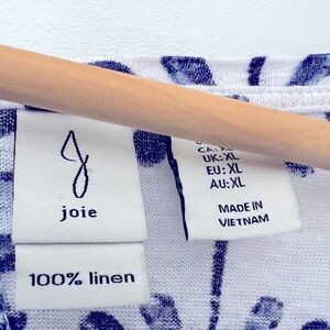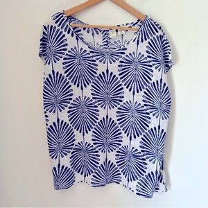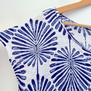 Joie Blue and White Cap Sleeve Boxy Linen Button Back Blouse Summer Print