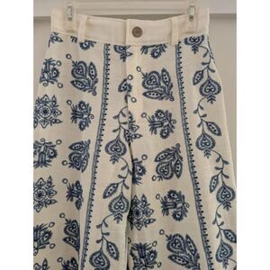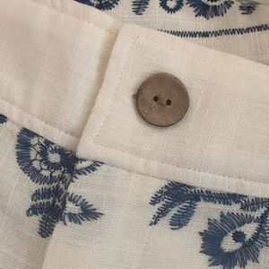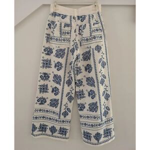 Joie Blue and White Embroidered Linen-Blend Wide-Leg Pants (NWT)