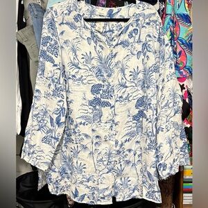 🆕 Joie Blue and White Relaxed Button Down Shirt with Mandarin Collar