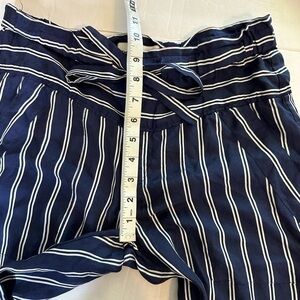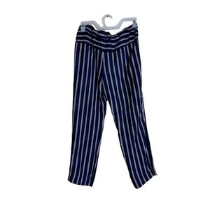 Joie Blue and White Stripe Silk Cropped Drawstring Trouser Pants