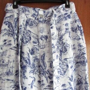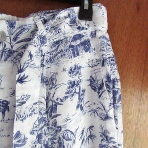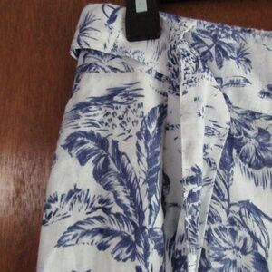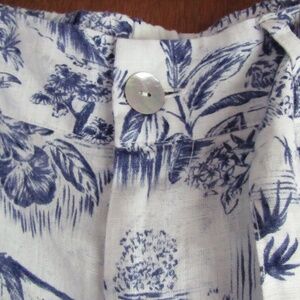 Joie Blue and White Tropical Pattern Loose-Fit Linen Pants Women's M