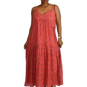 Joie Bondi Midi Dress Pink Tiered Cotton Sundress Loose Fit Straps Size Large