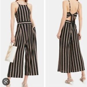 Joie Women’s Striped Jumpsuit (Linen Blend), exposed back & wide/flare leg—size extra small.