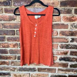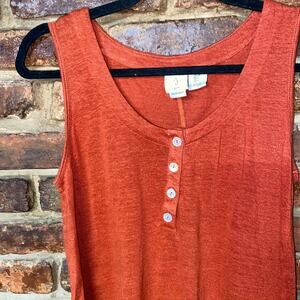 Joie Burnt Red Sleeveless Linen Quarter Button Henley Tank Top Womens Size Small