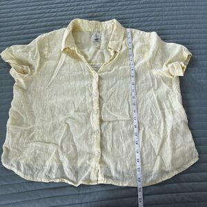 Joie Butter Yellow 100% Linen Cropped Shirt with Pearl buttons
